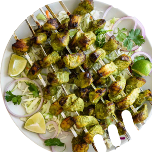 Découvrez le goût irrésistible de notre Hariyali Kebab (2 pièces) — une délicieuse spécialité indienne préparée avec des morceaux tendres de poulet marinés dans une pâte verte vibrante d’herbes fraîches et d’épices.